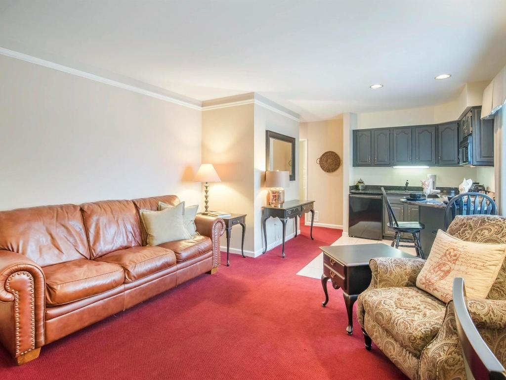 Room features an open concept, over-sized floor plan, equipped with living room and dining furniture, deluxe mattress, kitchenette with cooktop, large refrigerator, and microwave. Master bath features a full vanity. Amenities include: complimentary chef-prepared hot and cold buffet breakfast, free wifi, free parking,